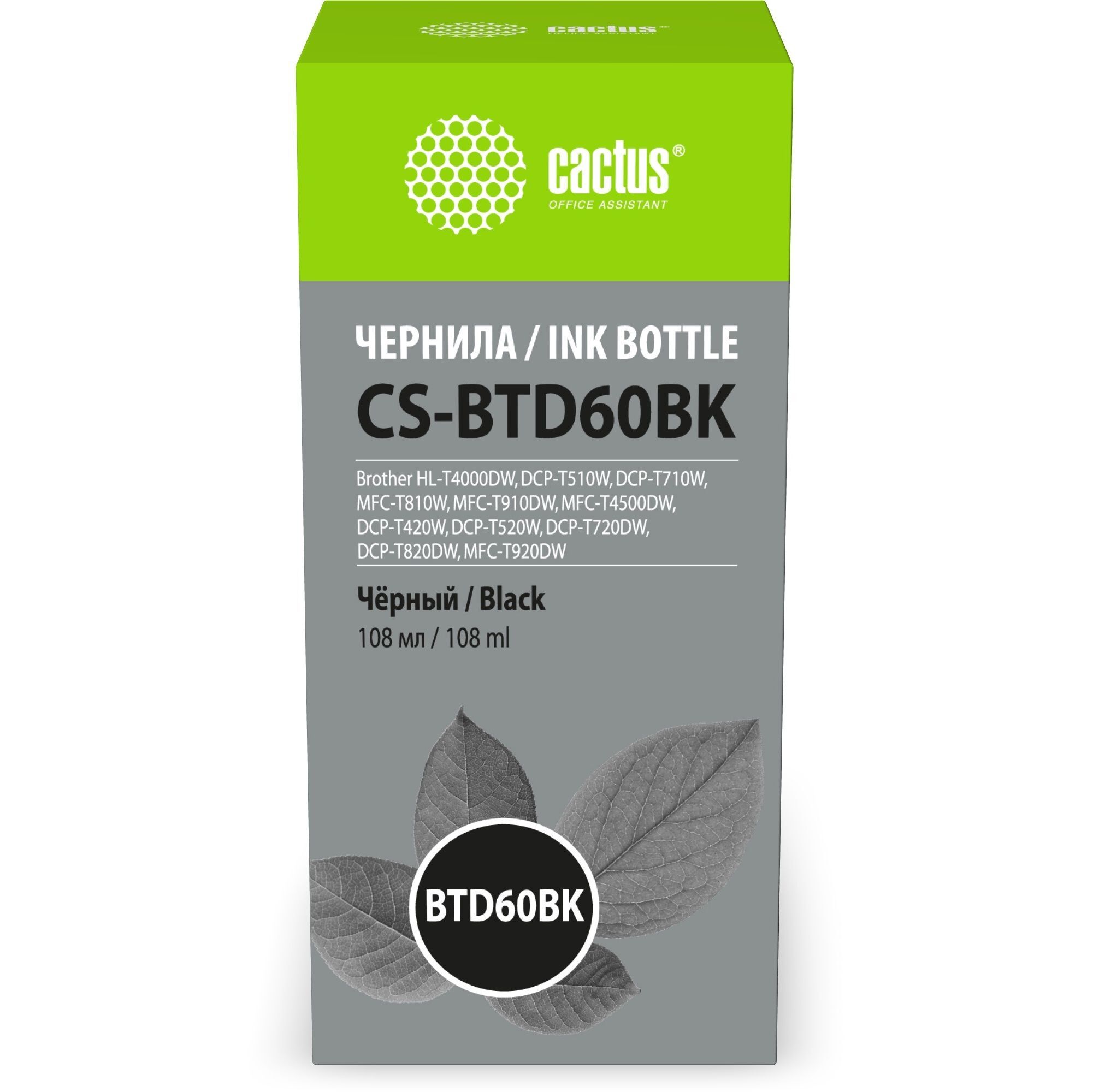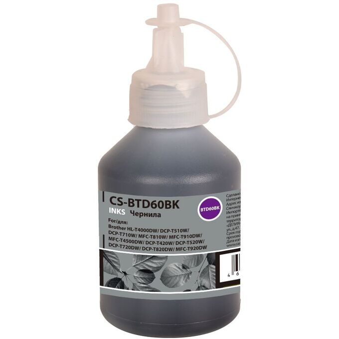 Чернила Cactus CS-BTD60BK черный 108мл для Brother HL-T4000DW, DCP-T510W, DCP-T710W, MFC-T810W, MFC-T910DW, MFC-T4500DW, DCP-T420W, DCP-T520W