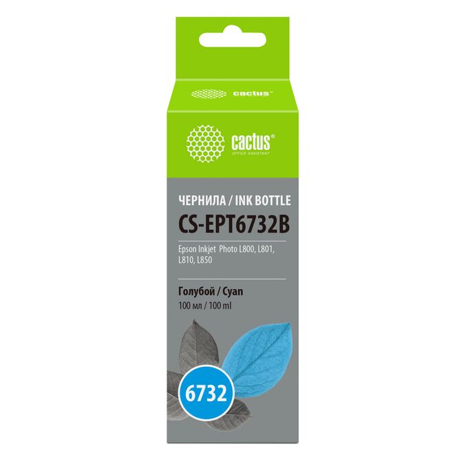 Чернила Cactus CS-EPT6732B T6732 голубой 100мл для Epson Epson L800/L810/L850/L1800