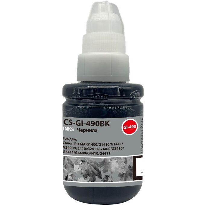 Чернила Cactus CS-GI-490BK черный пигментный 135мл для Canon PIXMA G1400/G1410/G1411/G2400/G2410/G2411/G3400/G3410/G3411/G4400/G4410/G4411