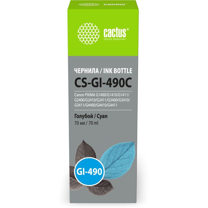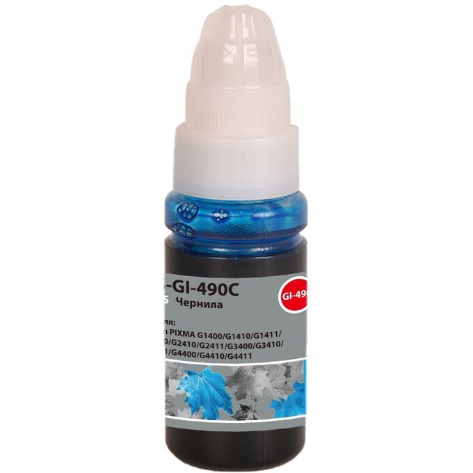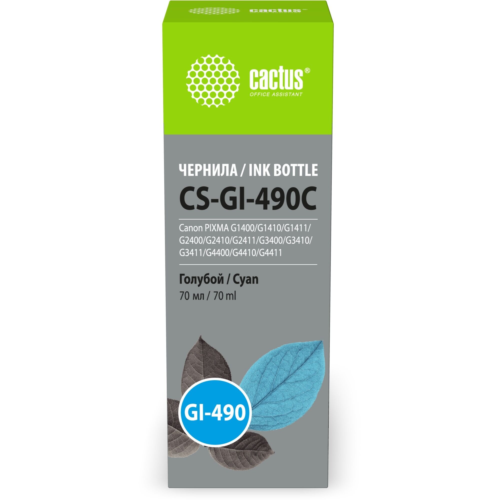 Чернила Cactus CS-GI-490C голубой 70мл для Canon PIXMA G1400/G1410/G1411/G2400/G2410/G2411/G3400/G3410/G3411/G4400/G4410/G4411