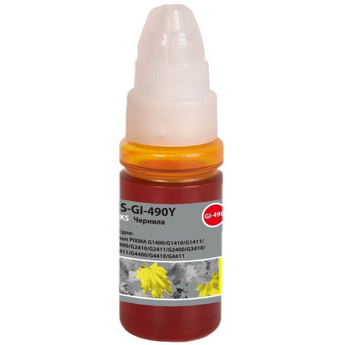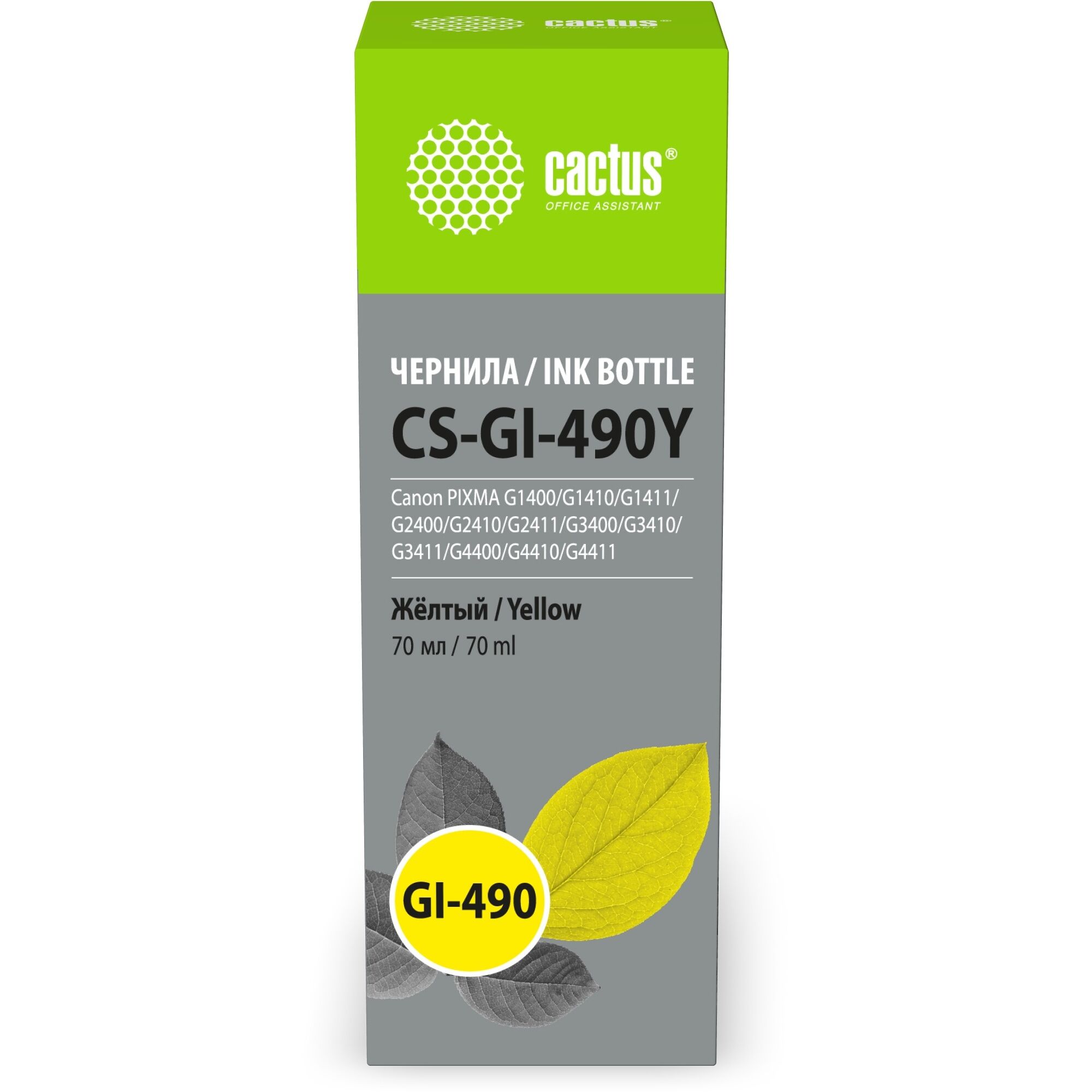Чернила Cactus CS-GI-490Y желтый 70мл для Canon PIXMA G1400/G1410/G1411/G2400/G2410/G2411/G3400/G3410/G3411/G4400/G4410/G4411