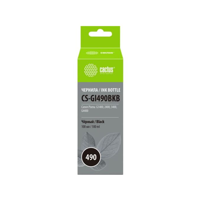 Чернила Cactus CS-GI490BKB GI-490 черный 100мл для Canon Pixma G1400/G2400/G3400