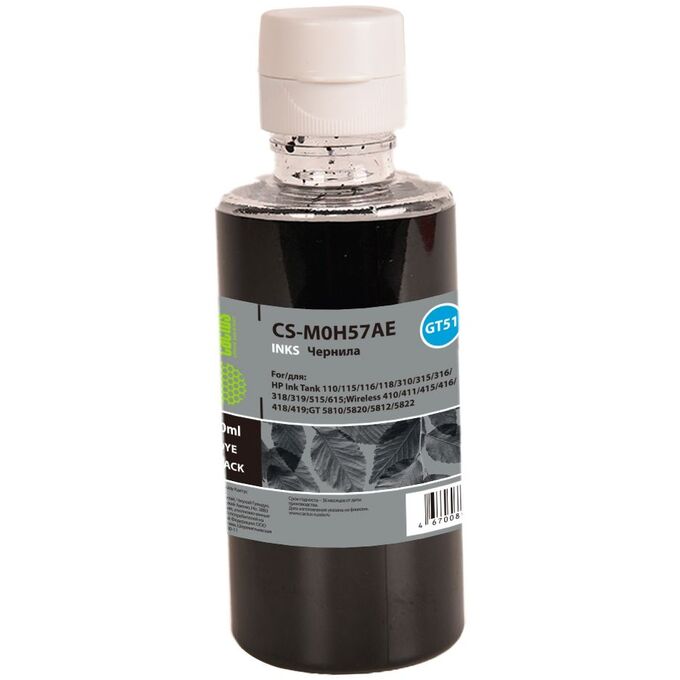 Чернила Cactus CS-M0H57AE GT51 черный 90мл для HP Ink Tank 110/115/116/118/310/315/316/318/319/515/615;Wireless 410/411/415/416/418/419;GT5810/5820