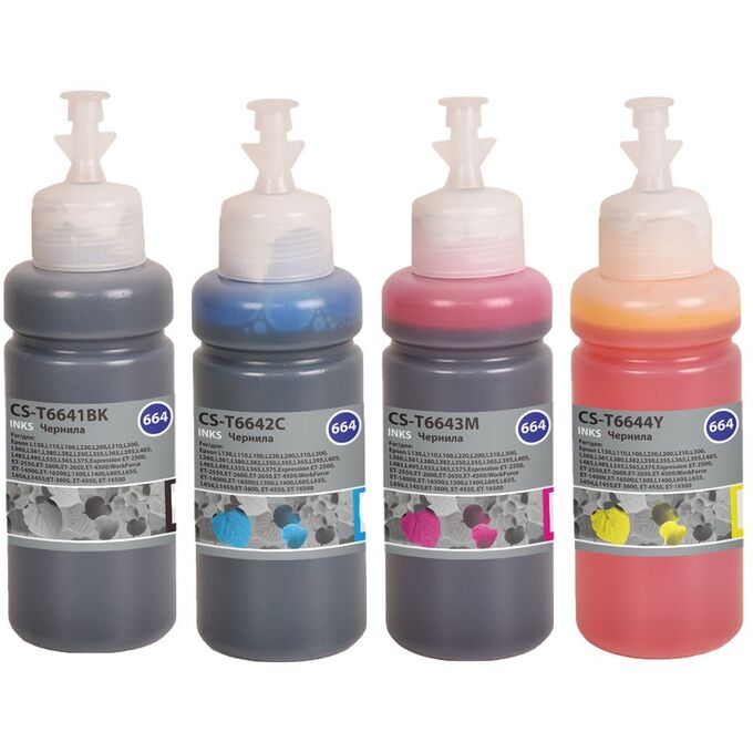 Чернила Cactus CS-T664set 664 голубой/пурпурный/желтый/черный набор 4x70мл для Epson L130,L110,L100,L220,L200,L310,L300,L360,L361,L380,L382,L350,L355
