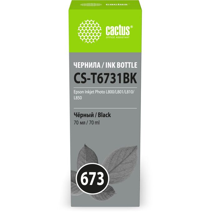Чернила Cactus CS-T6731BK 673 черный 70мл для Epson Inkjet Photo L800/L801/L810/L850