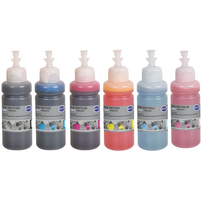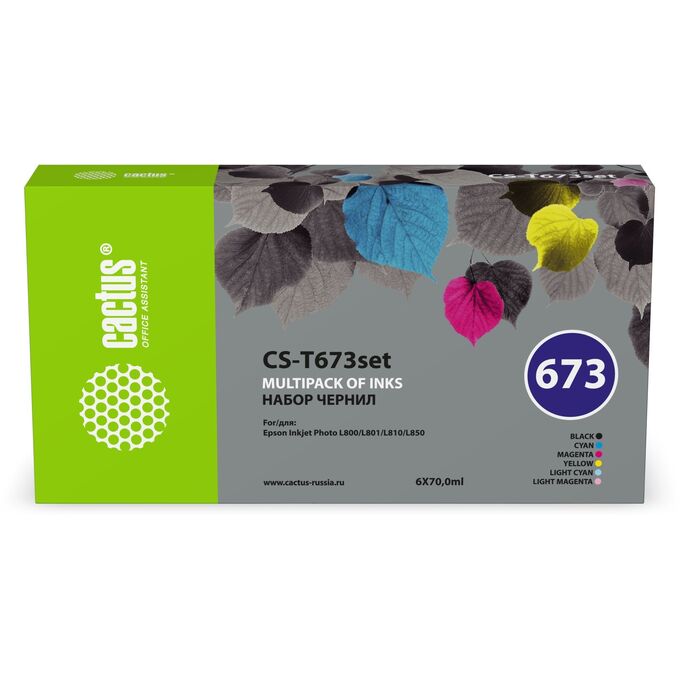Чернила Cactus CS-T673set 673 черный/голубой/пурпурный/желтый/светло-голубой/светло-пурпурный набор 6x70мл для Epson Inkjet Photo L800/L801/L810/L850