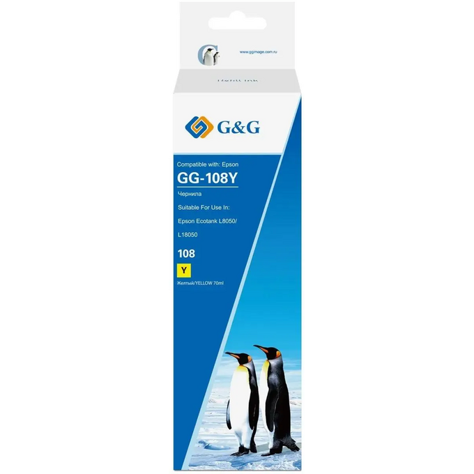 Чернила G&G GG-108Y C13T09C44A желтый70мл для Epson Ecotank L8050/L18050