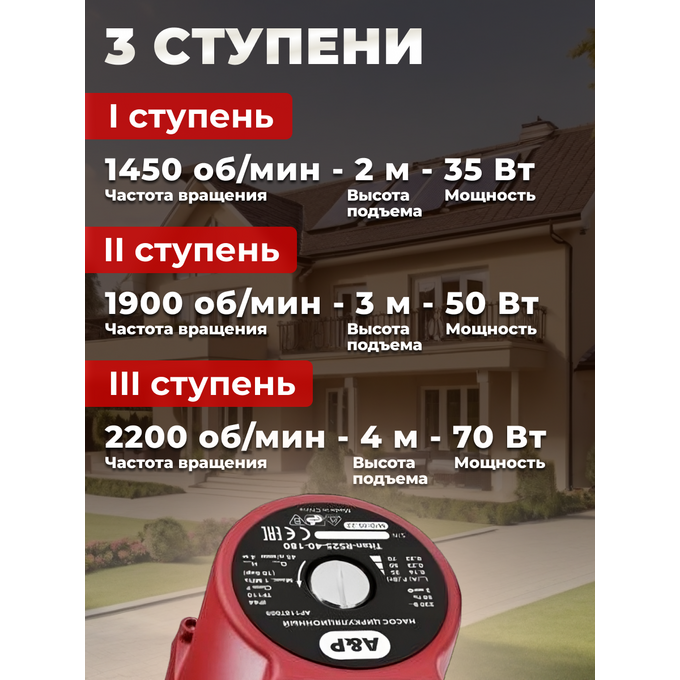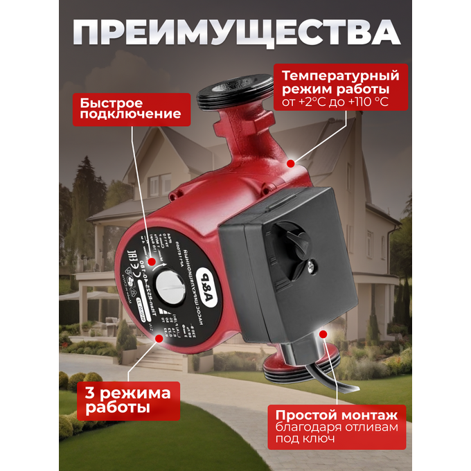 Циркуляционный насос A&P Titan-RS25-40-180 AP118T005 обеспечивает принудительную циркуляцию теплоносителя в системе водоснабжения.