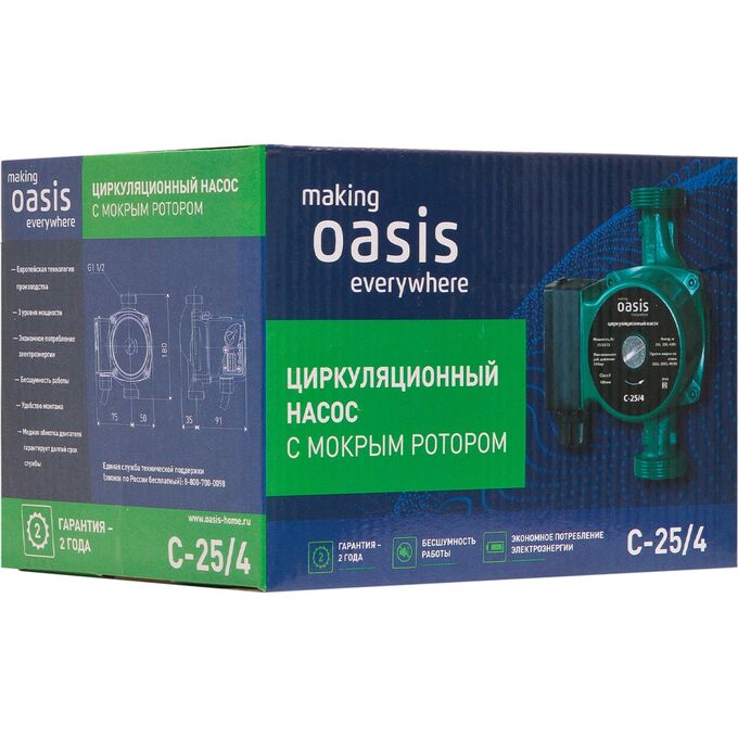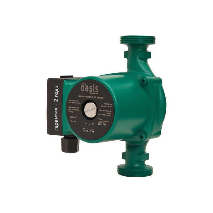 Циркуляционный насос «making Oasis everywhere» C-25/4 служит для циркуляции воды в системах отопления и обогрева полов. Прибор полезен в загородных домах площадью более 100м^2, так как в таких условиях естественная конвекция не может обеспечить равномерный прогрев всех отопительных приборов.