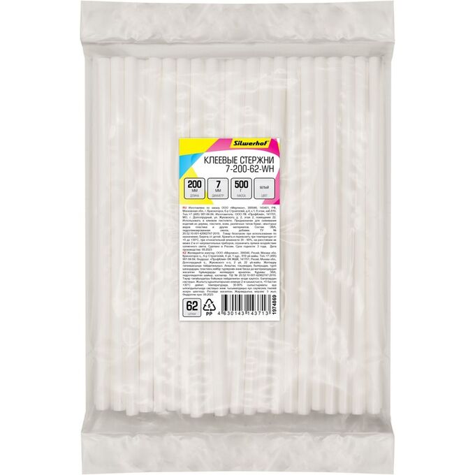 Cтержни клеевые для клеев. пистолета Silwerhof 7-200-62-WH L-200мм D7мм белый 62шт