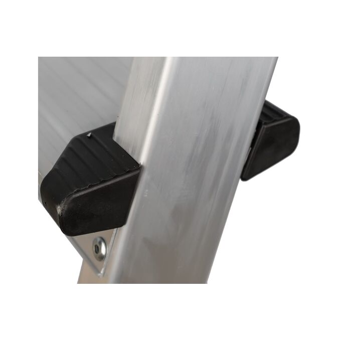 Алюминиевая конструкция делает стремянку легкой и прочной, ее можно эксплуатировать внутри помещений и на улице, так как она не подвержена коррозии.