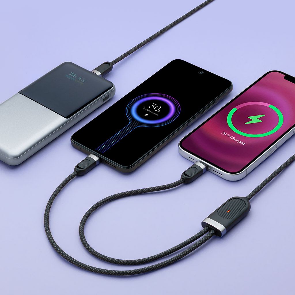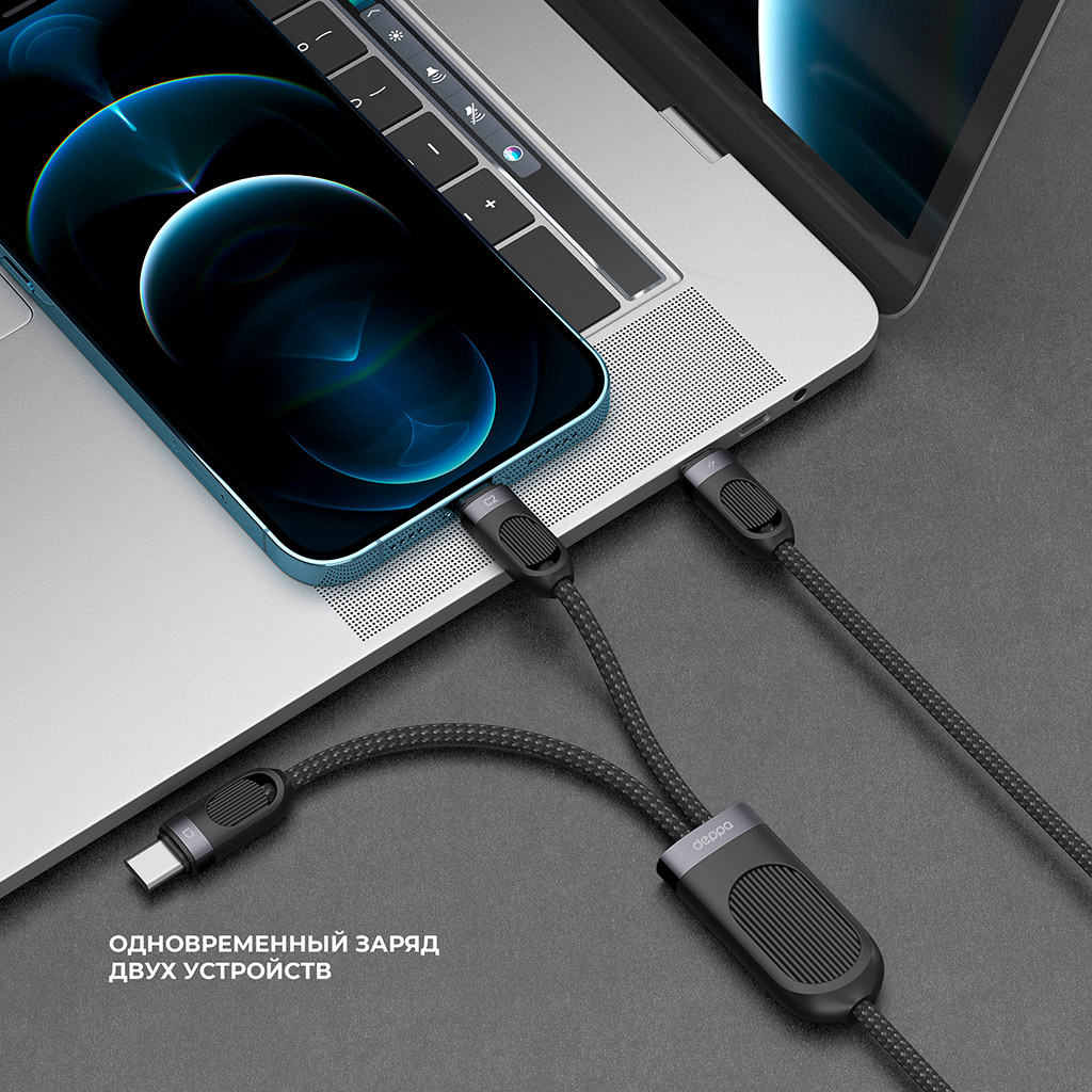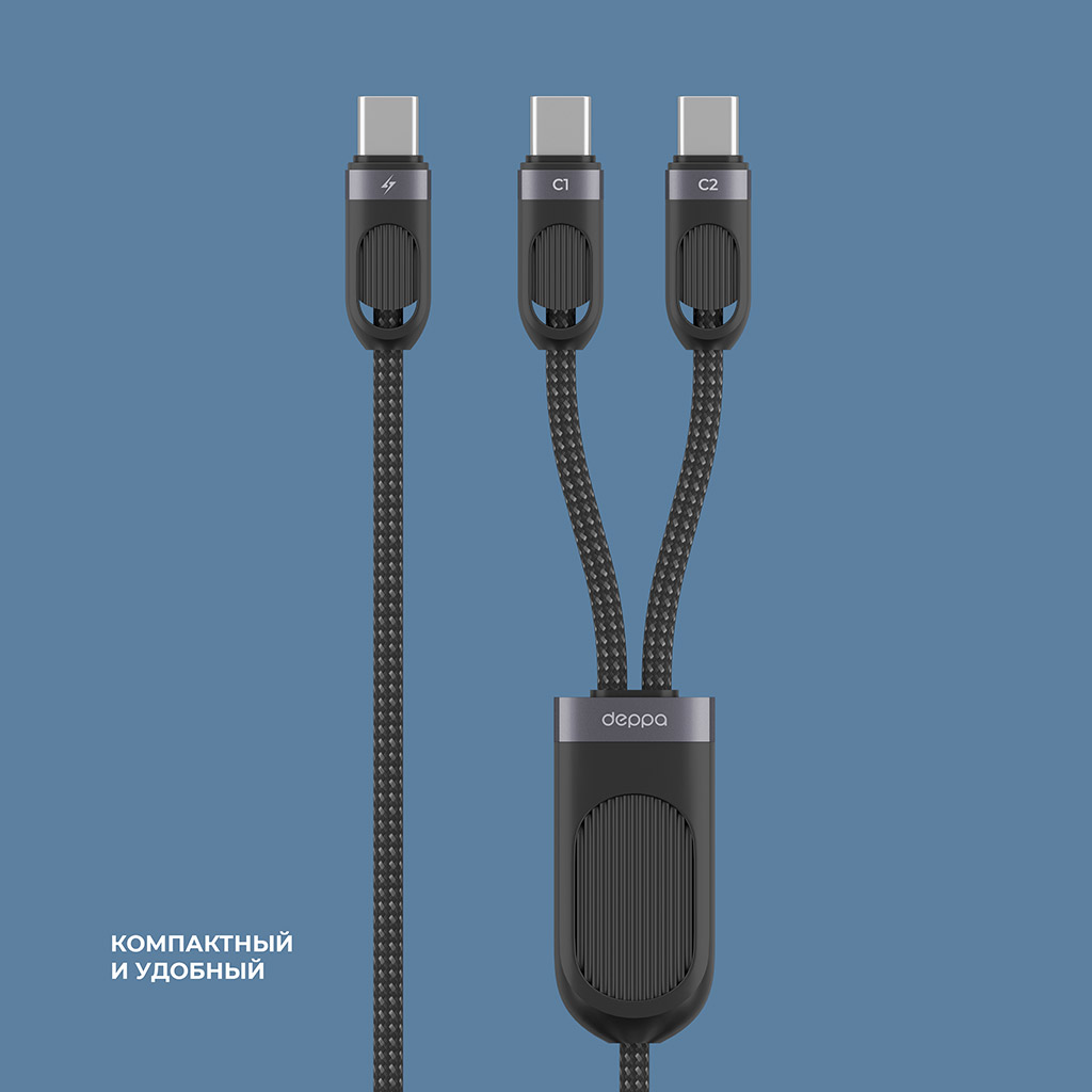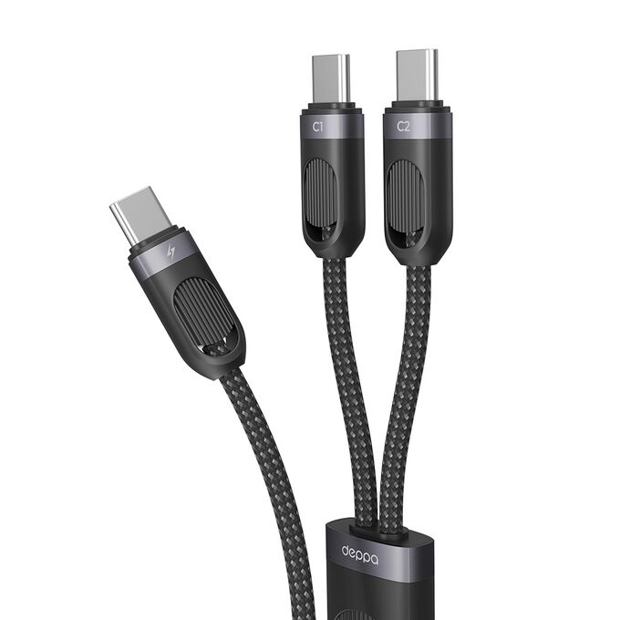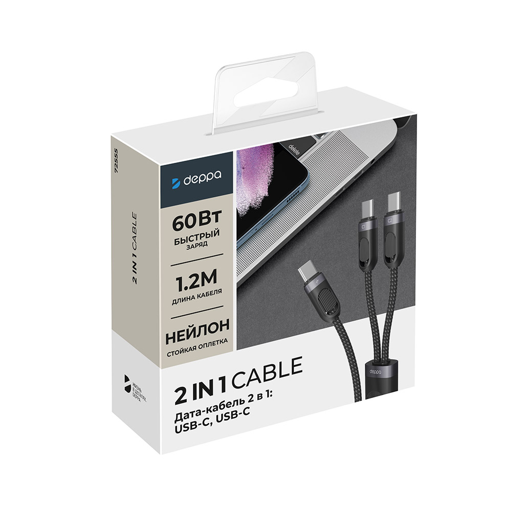 Дата-кабель 2 в 1: USB-C, USB-C, 60Вт, 1.2м, черный, Deppa