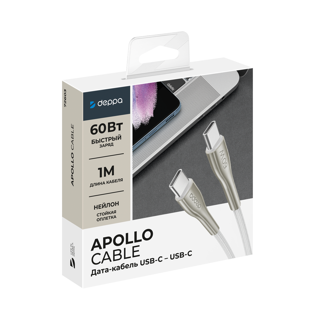 Дата-кабель Apollo USB-С - USB-С, 60Вт, 1м, белый, Deppa