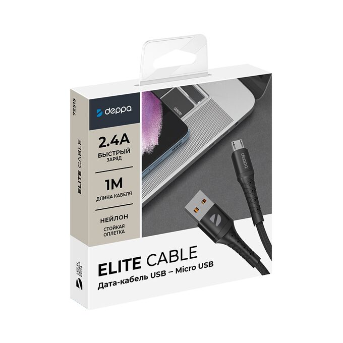 Дата-кабель Armor USB - Micro-USB, 1м, черный, Deppa