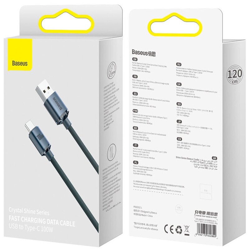 Дата-кабель Baseus Crystal Shine (CAJY000401) Fast Charging USB to Type-C 100W 1.2m Black
