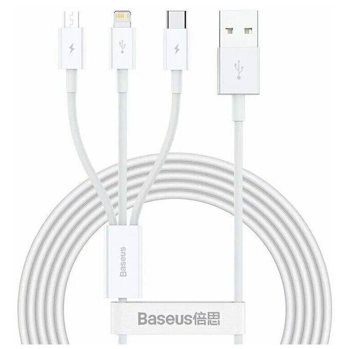 Дата-кабель Baseus Superior CAMLTYS-02 (BAS-CAMLTYS-02-WT) с функцией быстрой зарядки USB на M+L+C 3.5A 1.5м, белый