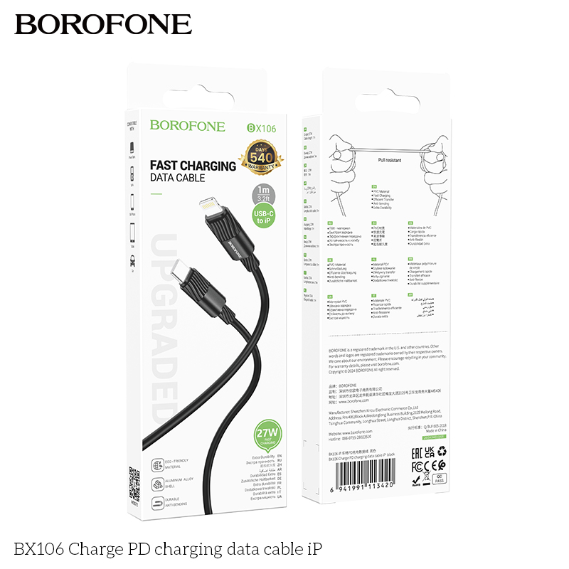 Дата-кабель BOROFONE BX106 Charge PD charging data cable iP (черный)