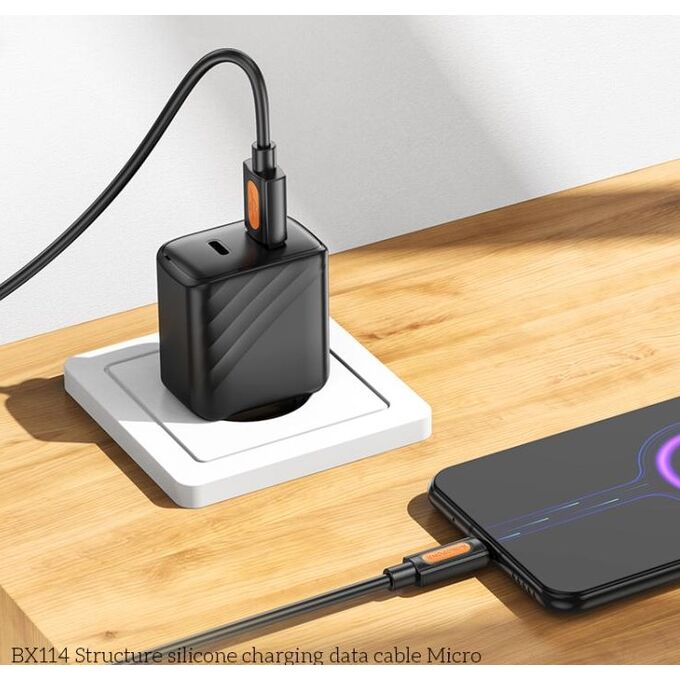 Дата-кабель BOROFONE BX114 Structure silicone charging Micro (черный)