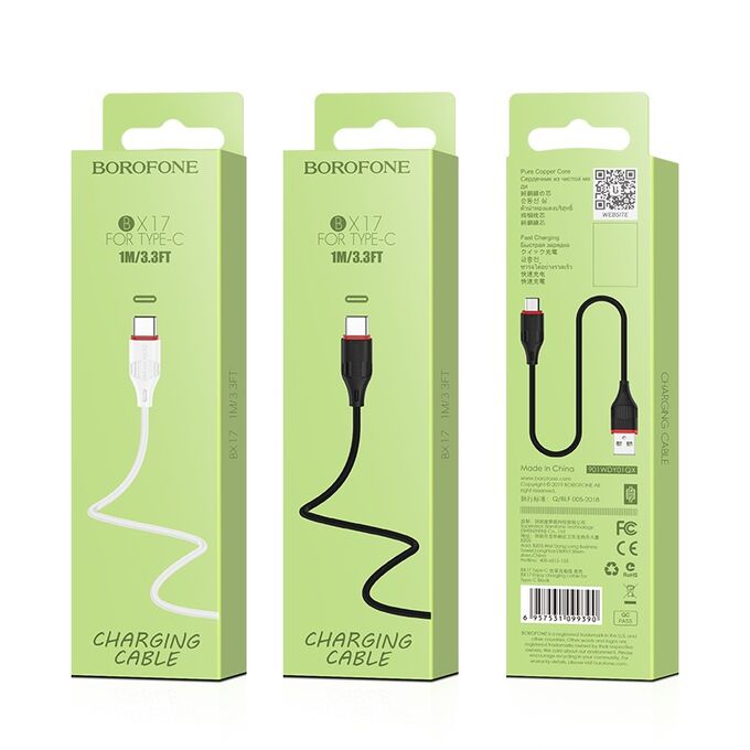 Дата-кабель BOROFONE BX17 Enjoy Type-C, 1м (белый)
