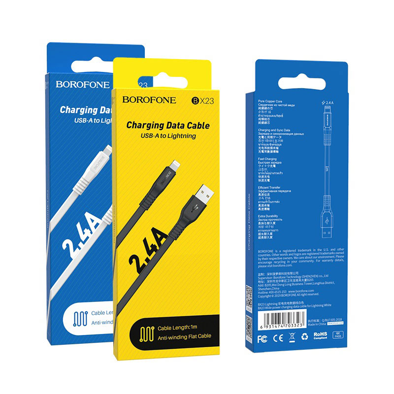 Дата-кабель BOROFONE BX23 Wide Lightning, 1м (чёрный)