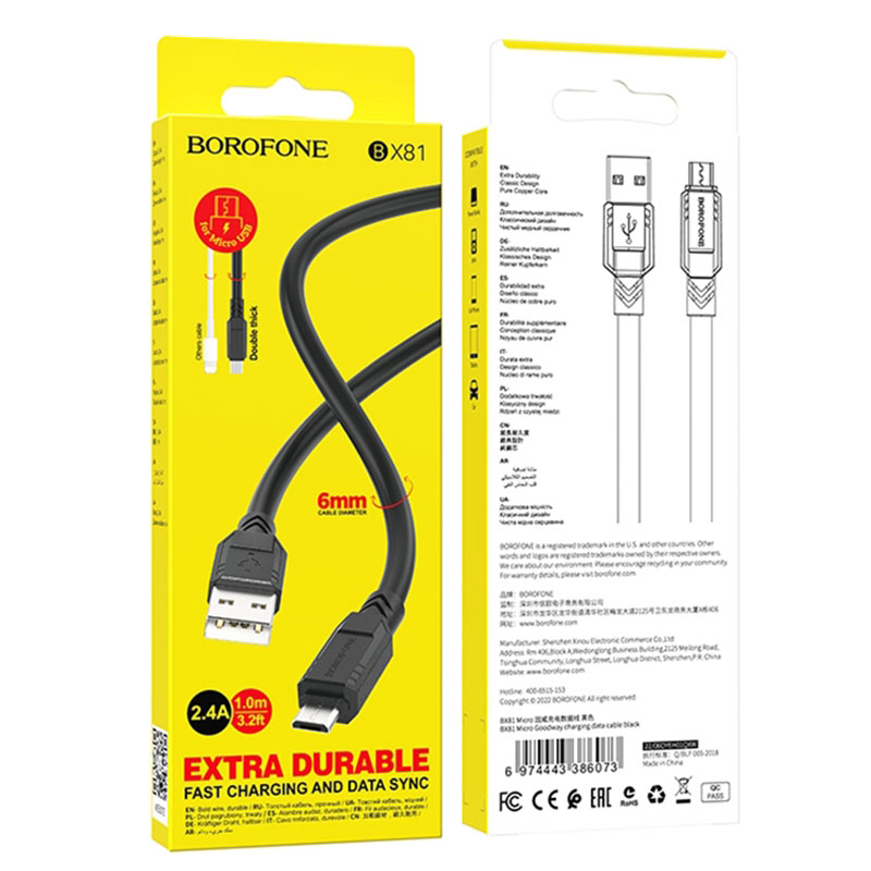 Дата-кабель BOROFONE BX81 Goodway charging micro 1м (черный)