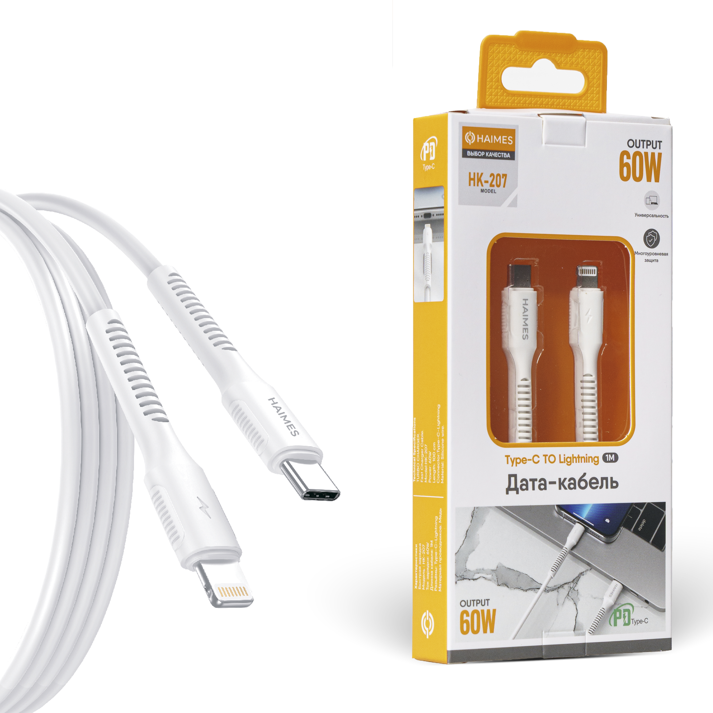 Дата-кабель HAIMES HK-207 USB - LIGHTNING 60W