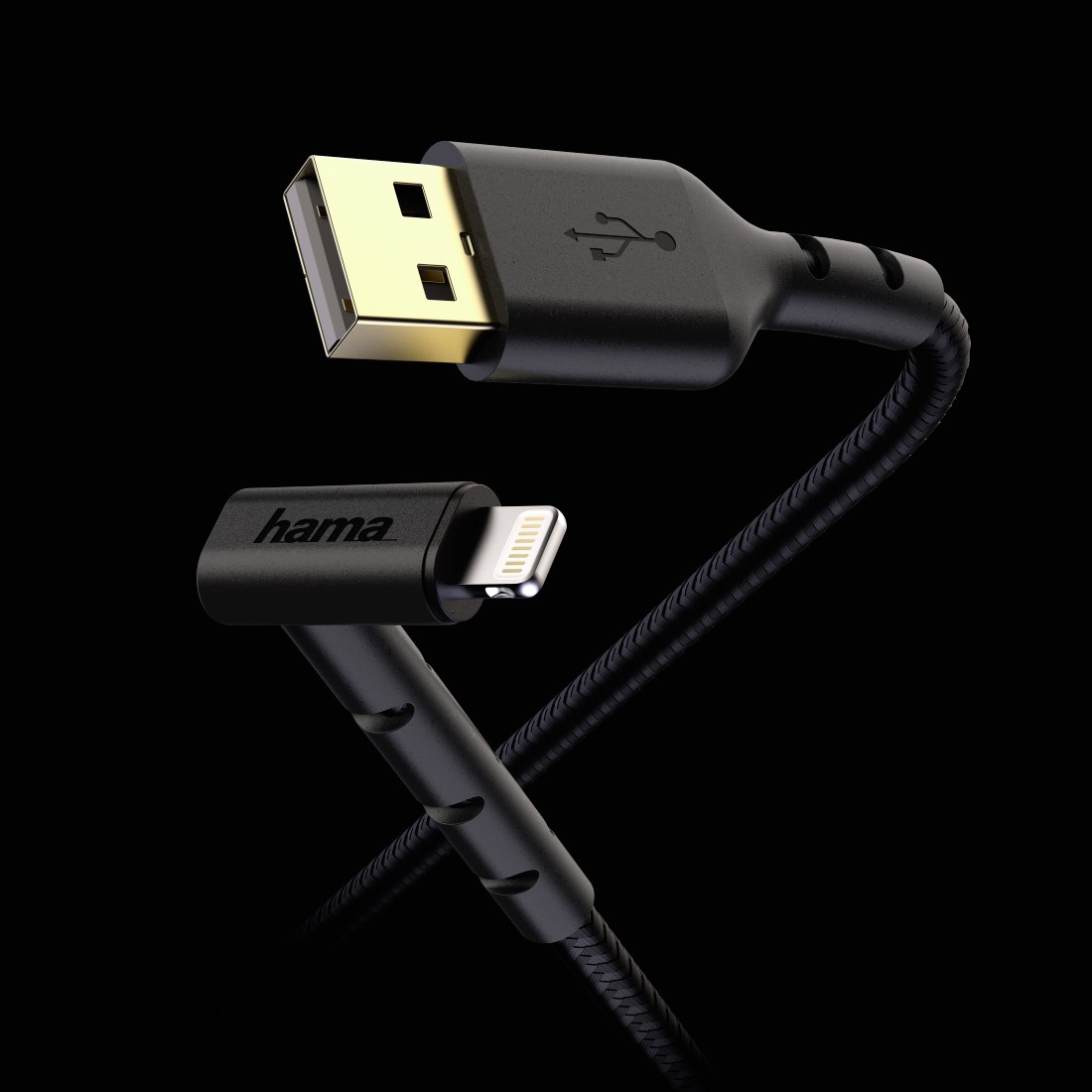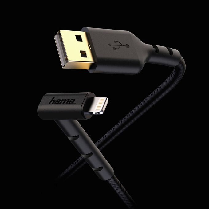 Дата-кабель Hama 00187212 Lightning угловой USB 2.0 1.5м черный