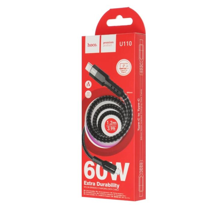 Дата-кабель HOCO U110 Type-C to Type-C 60W (черный)