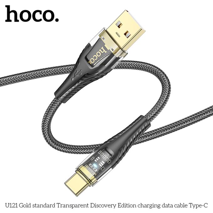 Дата-кабель HOCO U121 Gold standard Transparent Discovery Edition Type-C (черный)
