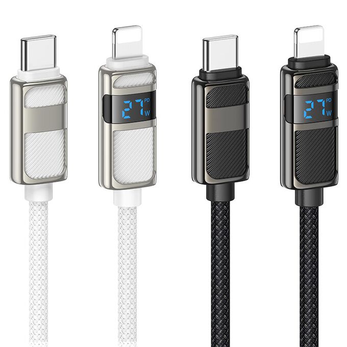 U137 Line, Type-C на iP зарядный дата кабель, поддержка быстрой зарядки PD 27W, LED цифровой дисплей, нейлоновая оплётка и коннекторы из цинкового сплава, длина – 1.2м