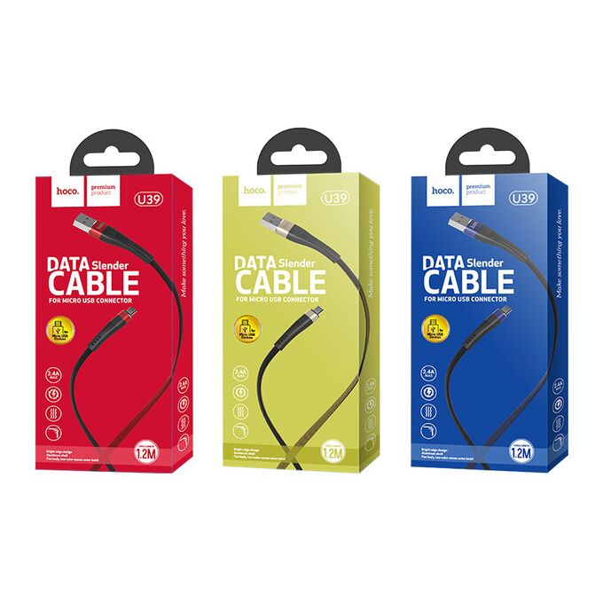 Дата-кабель HOCO U39 Slender micro 1м (чёрно-красный)