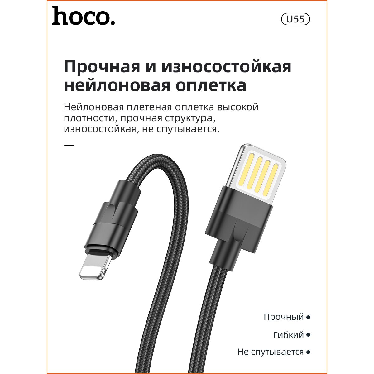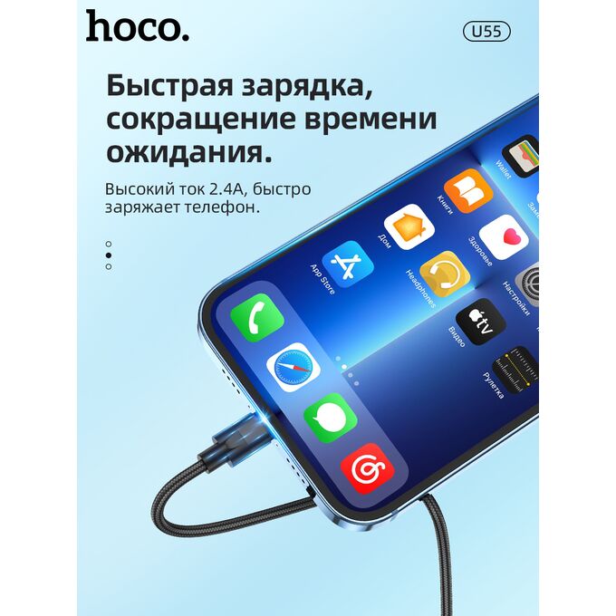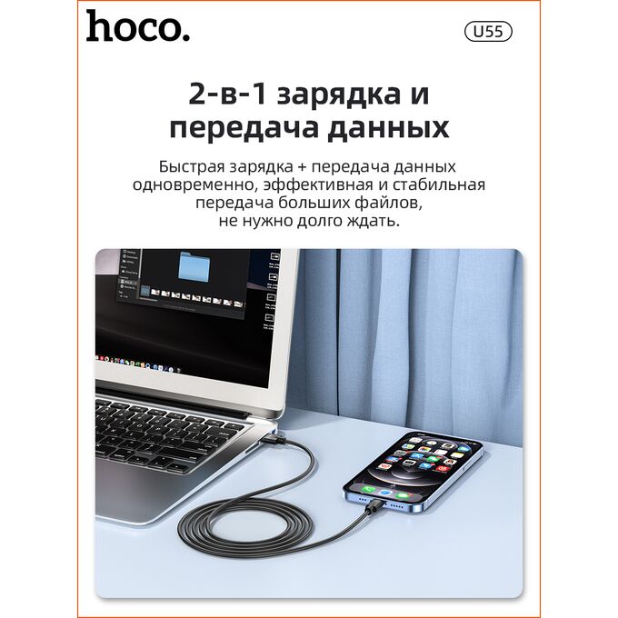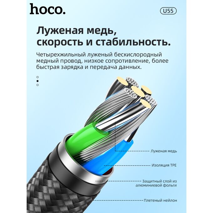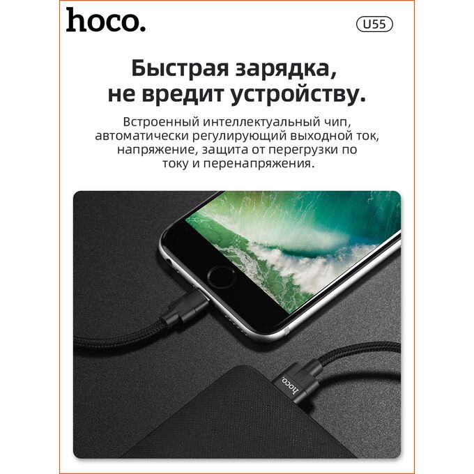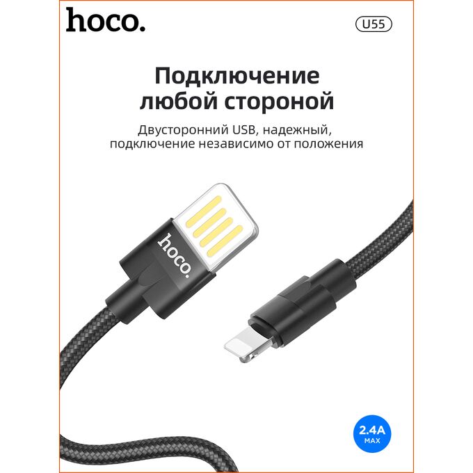 Дата-кабель HOCO U55 Outstanding lightning 1м (чёрный)