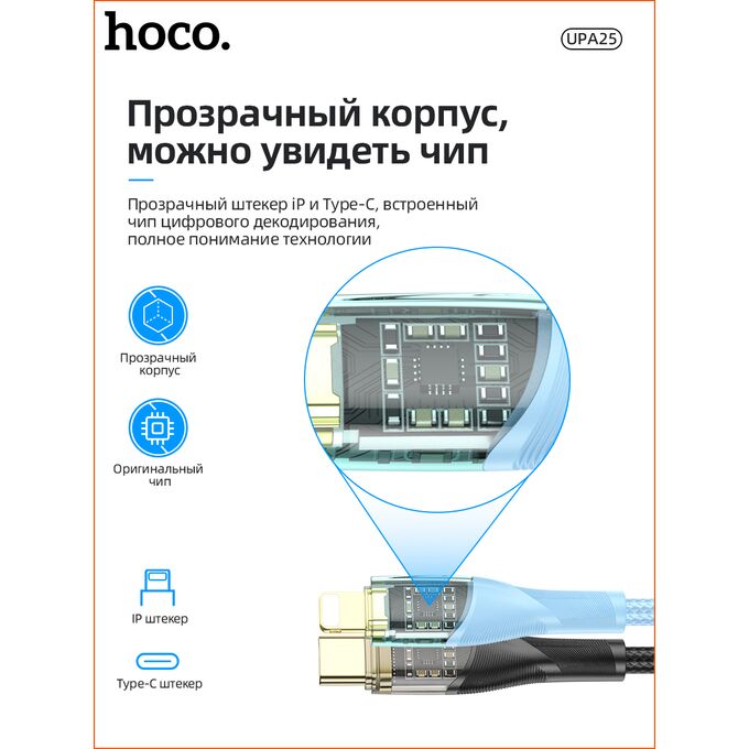Дата-кабель HOCO UPA25 Transparent Discovery Edition Digital Type-C (чёрный)