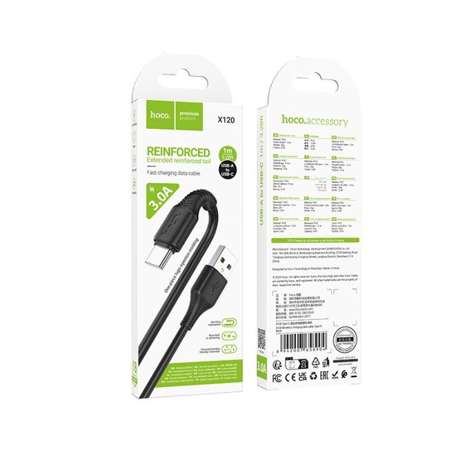Дата-кабель HOCOX120 Beneficio charging data cable Type-C(packaged) (черный)