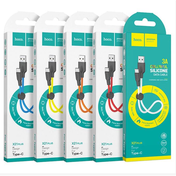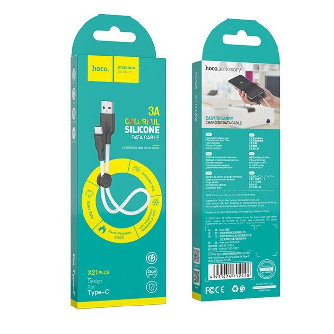 Дата-кабель HOCO X21 Plus Silicone charging Type-C 0,25 м (чёрно-белый)