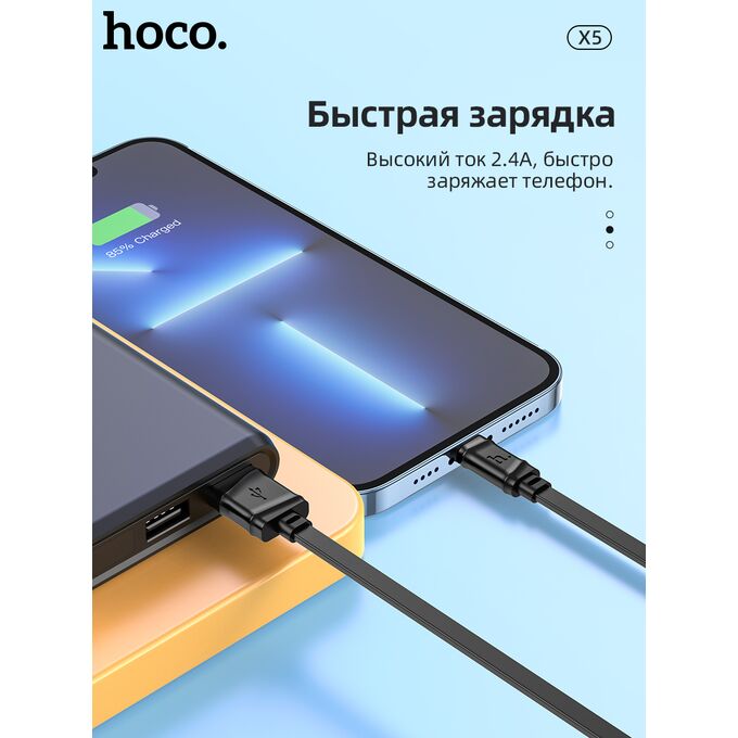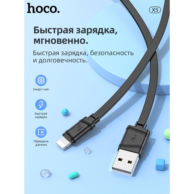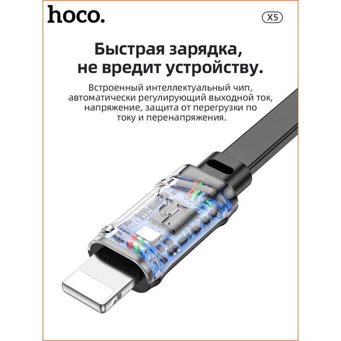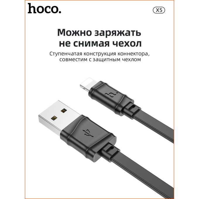 Дата-кабель HOCO X5 Bamboo Lightning, 1м (черный)