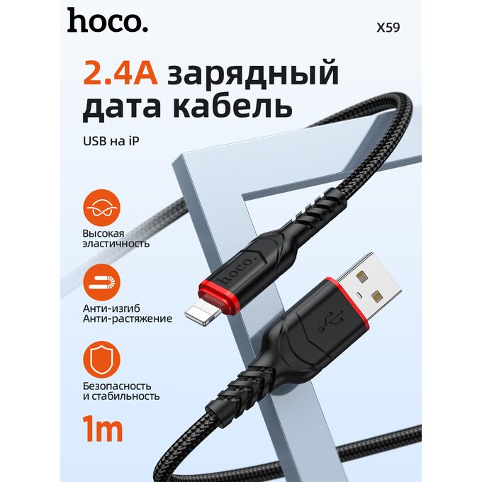 Дата-кабель HOCO X59 Victory charging data cable for iP, 1м (черный)