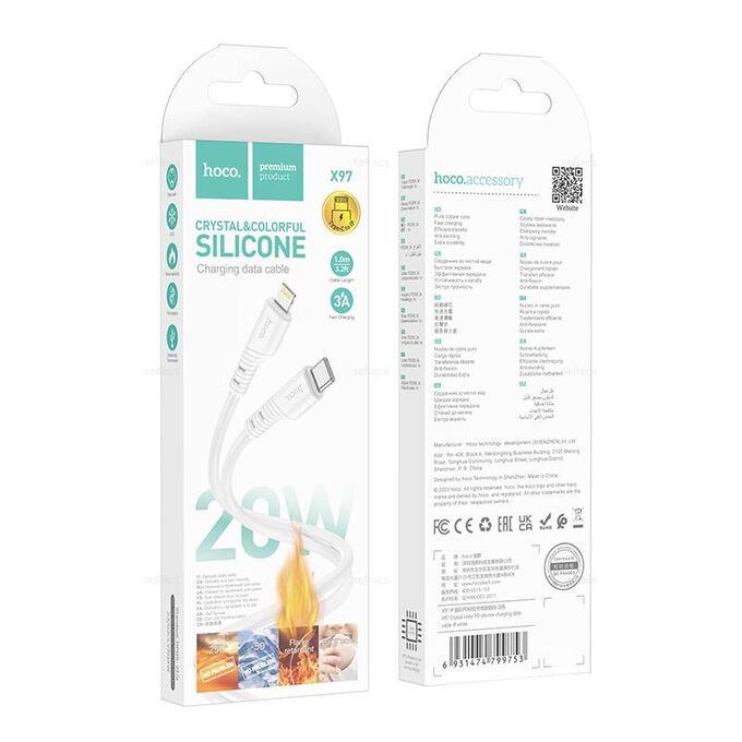 Дата-кабель HOCO X97 Crystal color silicone charging Lightning, 1м (серый)