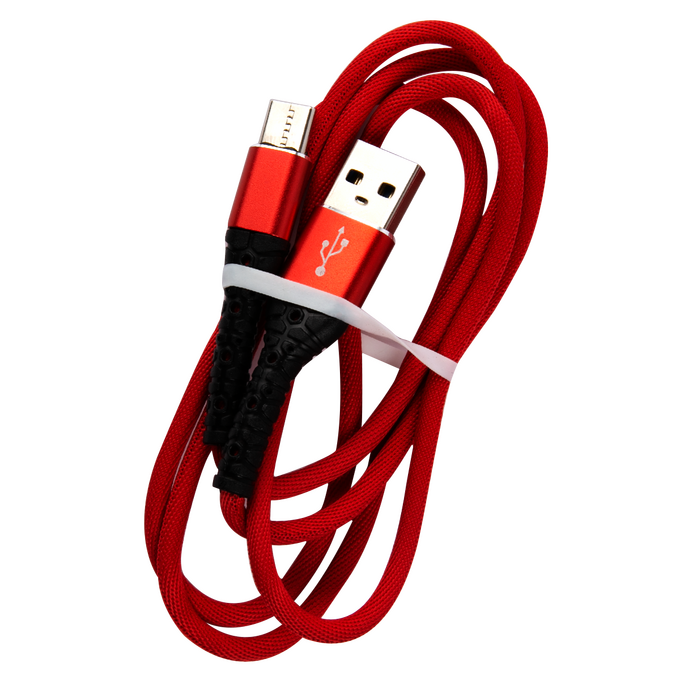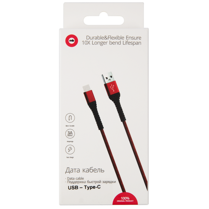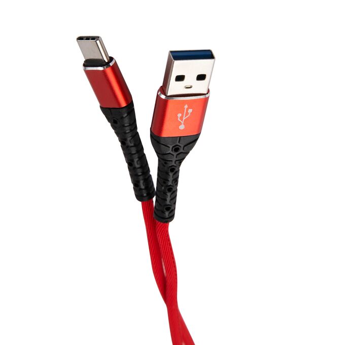 Дата-кабель mObility USB – Type-C, 3А, тканевая оплетка, красный