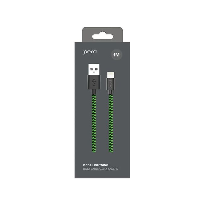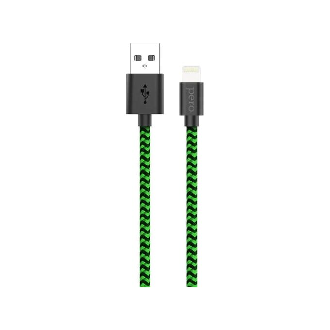 Дата-кабель PERO DC-04 8-pin Lightning, 2А, 1м Green-black