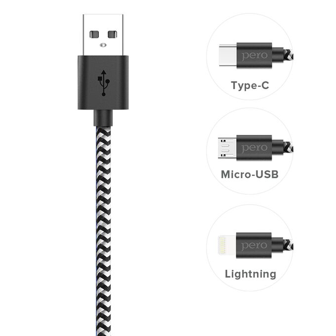 Дата-кабель PERO DC-04 micro-USB, 2А, 1м, Silver-black