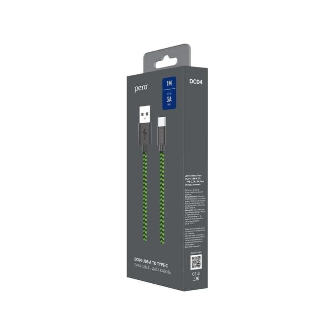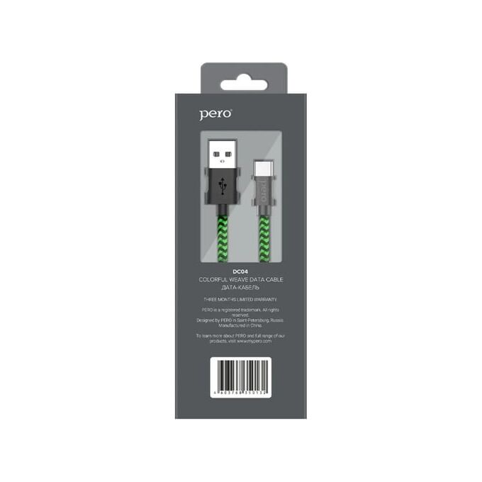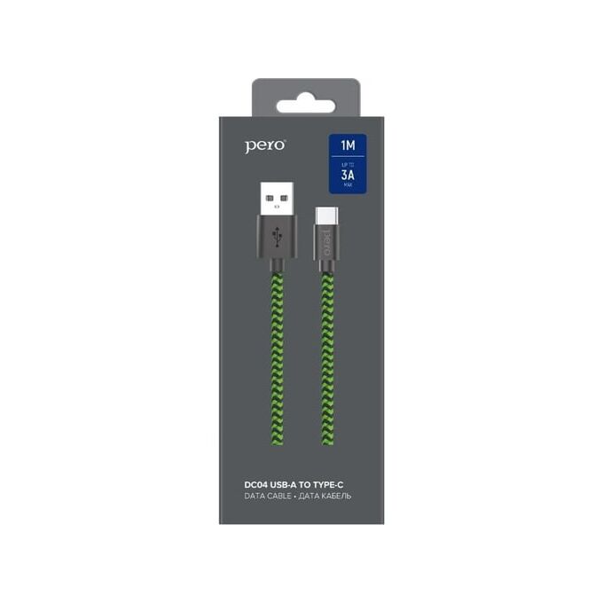 Дата-кабель PERO DC-04 Type-C, 3А, 1м Green-black Fast Charge