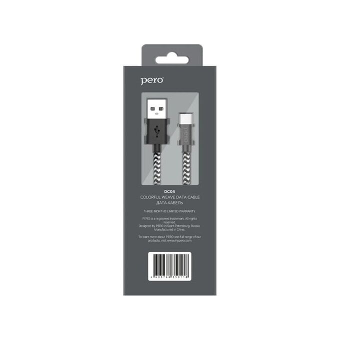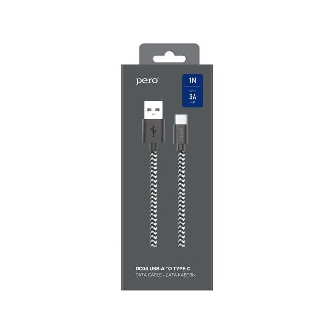 Дата-кабель PERO DC-04 Type-C, 3А, 1м, Silver-black Fast Charge