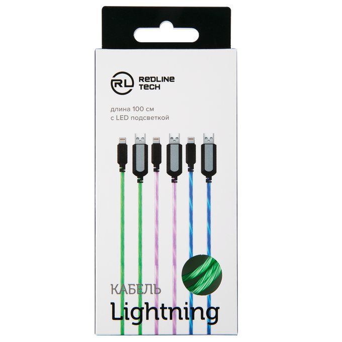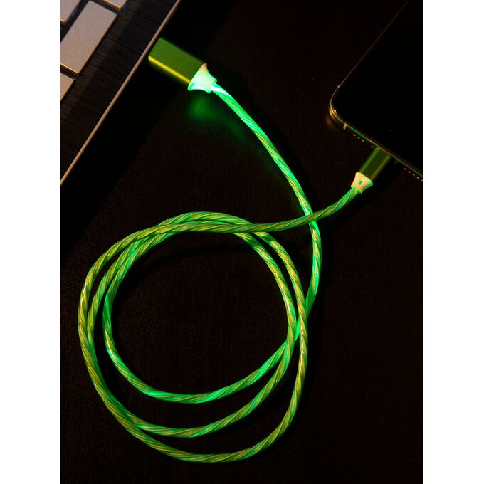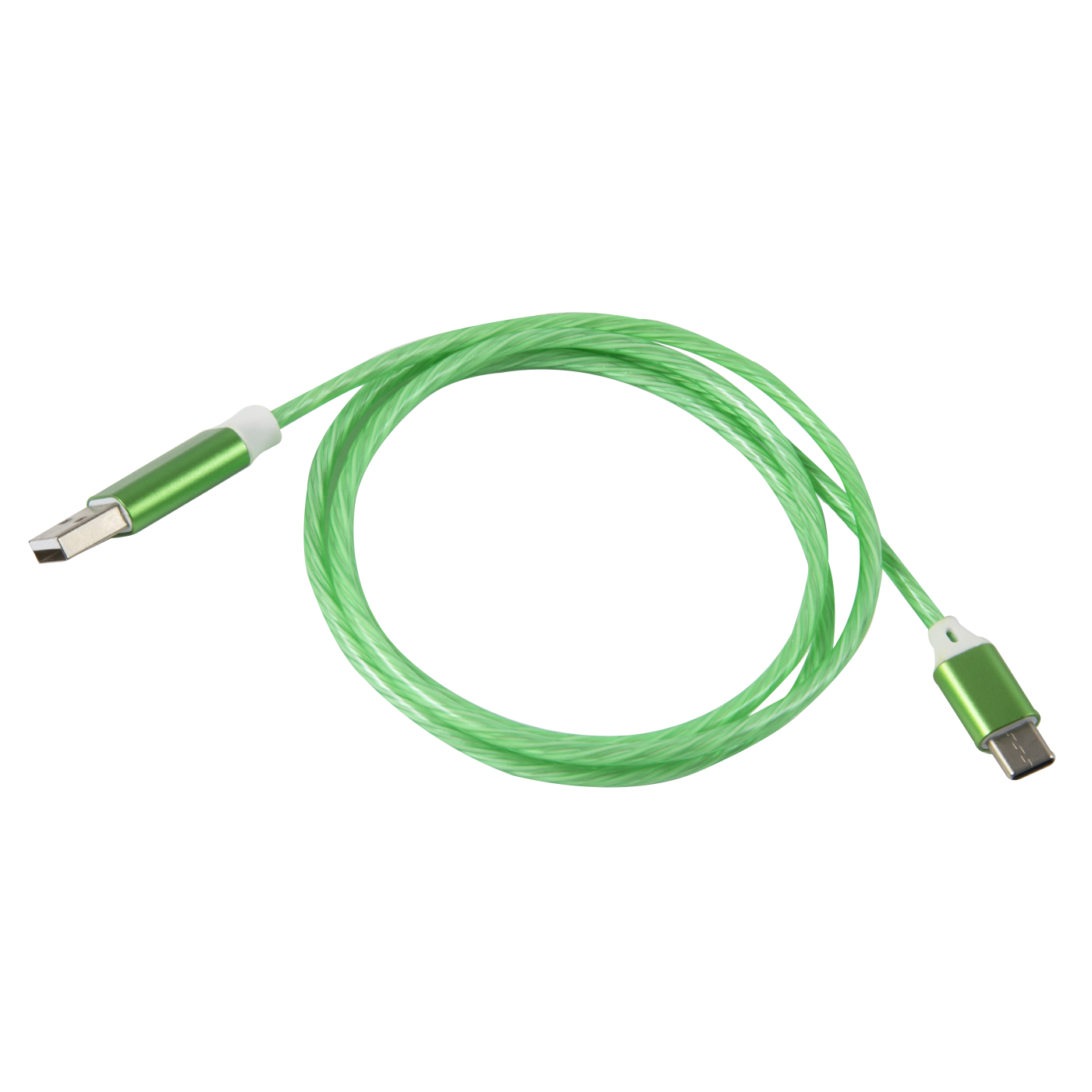 Дата-кабель Red Line LED USB - TYPE-C, зеленый