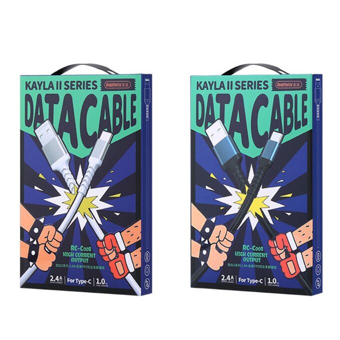 Дата-кабель REMAX Kayla II Series 2.4A Elastic TPE Aluminum Data Cable RC-C008 Type-C Black