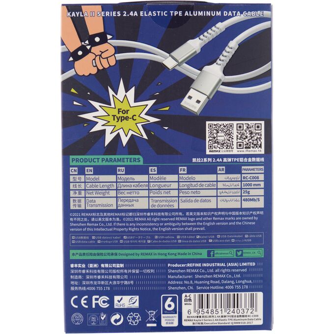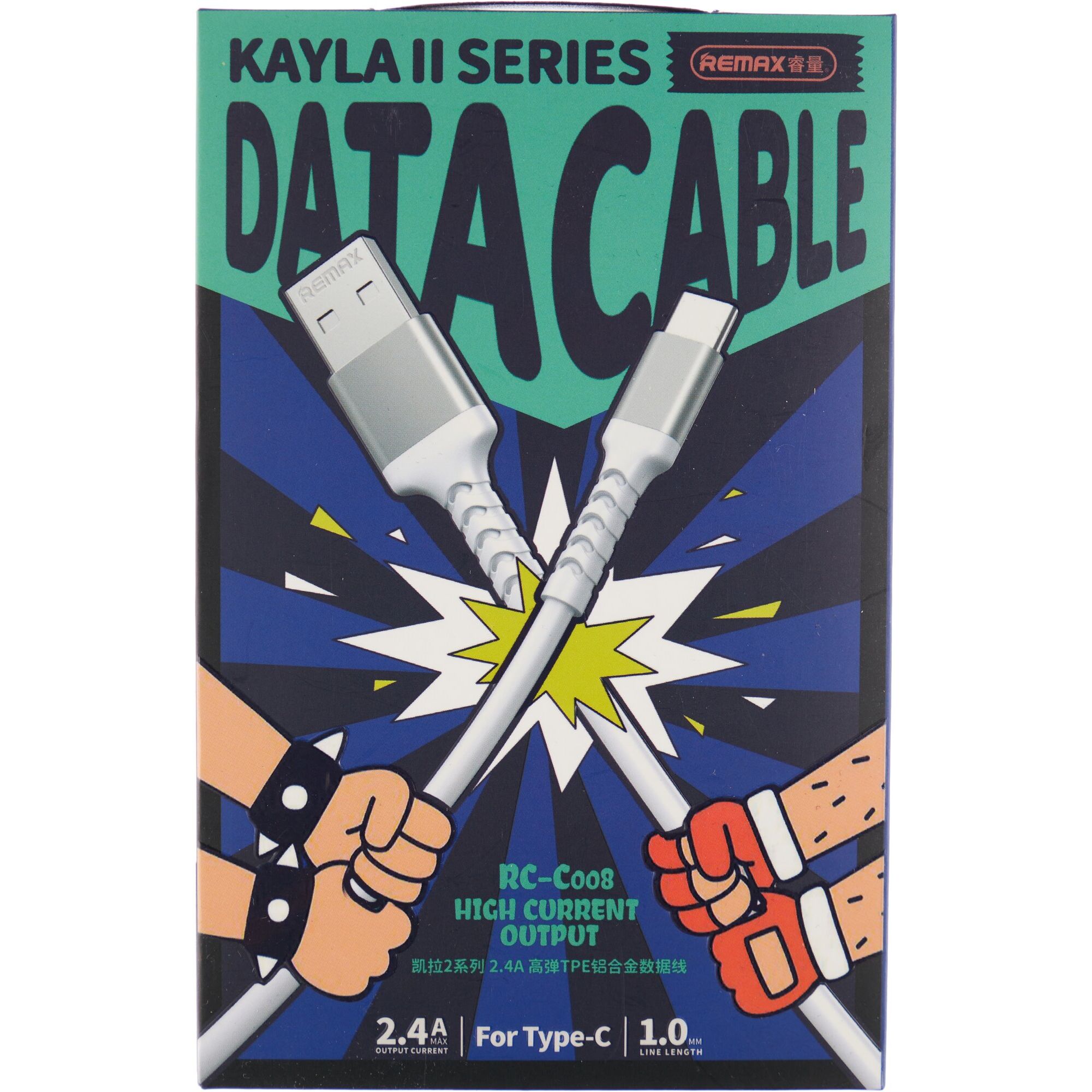 Дата-кабель REMAX Kayla II Series 2.4A Elastic TPE Aluminum Data Cable RC-C008 Type-C White