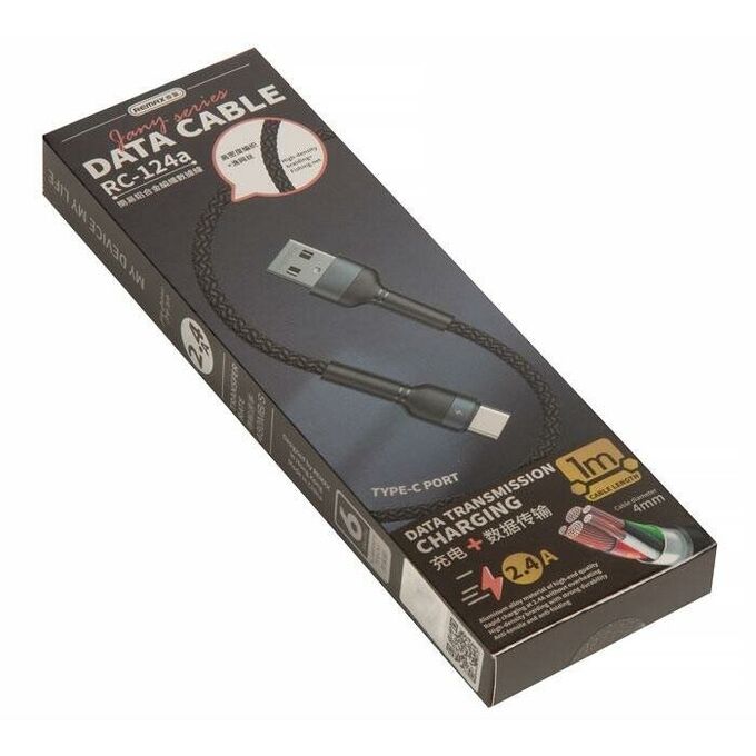 Дата-кабель REMAX Jany Series Aluminum Alloy Braided 2.4A Data Cable RC-124a Тype-C 1м (черный)