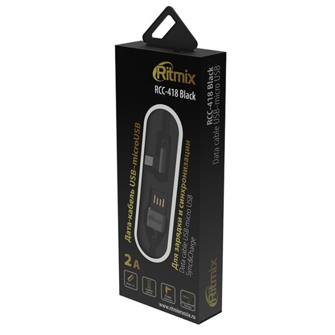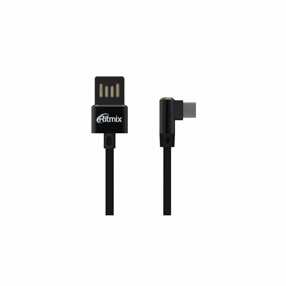 Дата-кабель Ritmix RCC-418 USB - MicroUSB 2А Угловой двустор1м тканевая опл блистер черный