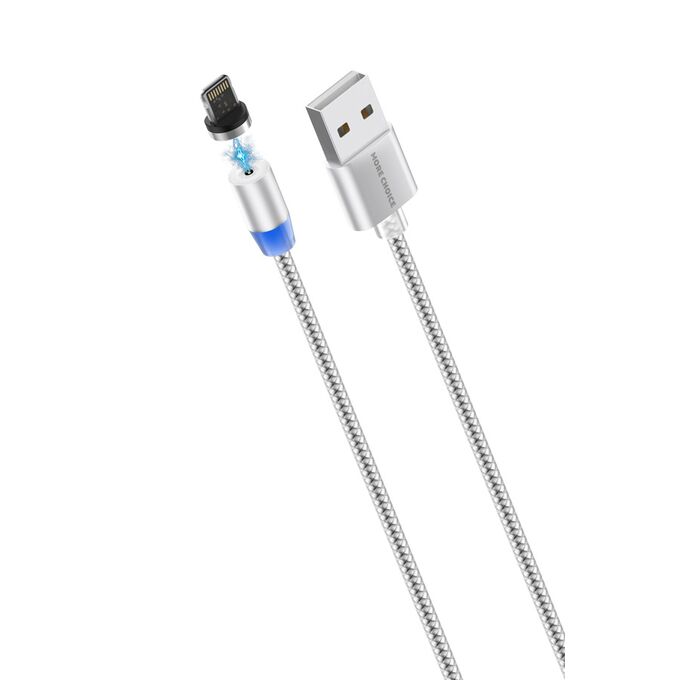 Дата-кабель Smart USB 2.4A для Lightning 8-pin Magnetic More choice K61Si нейлон 1м (Silver)