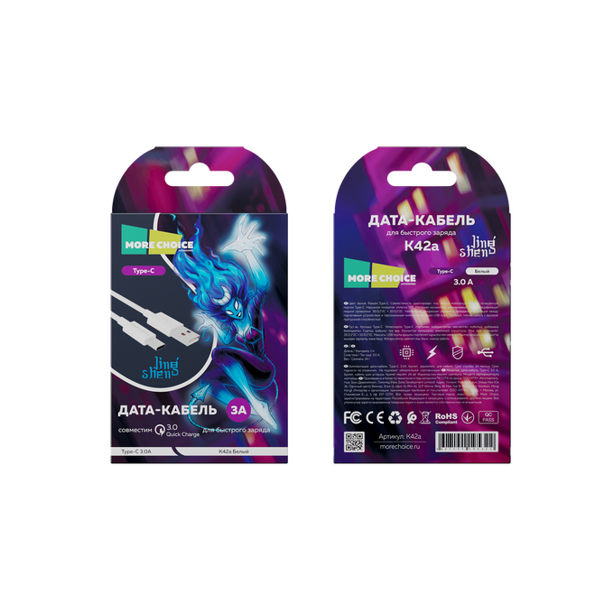 Дата-кабель Smart USB 3.0A для Type-C More choice K42a ТРЕ 1м (White)